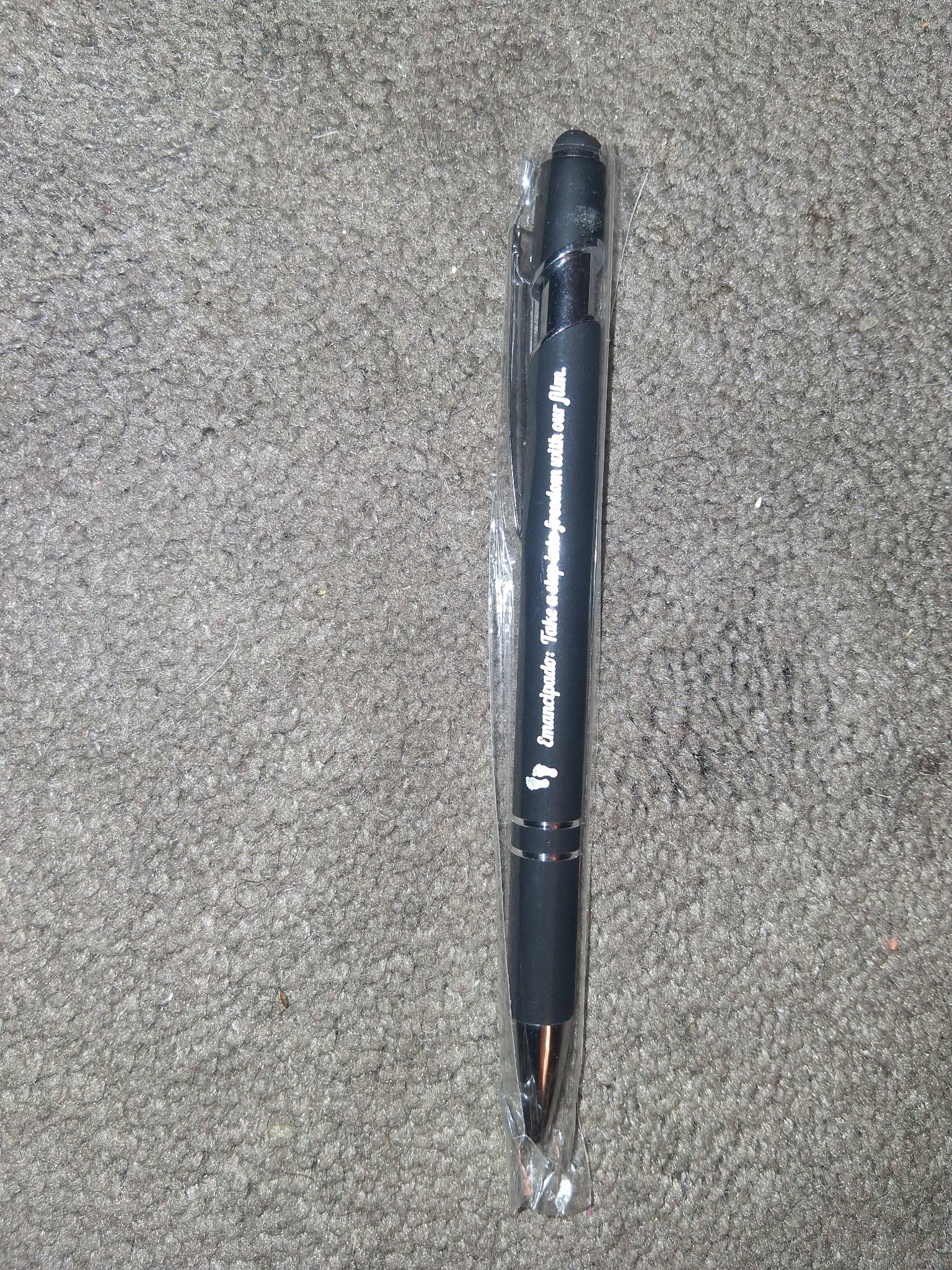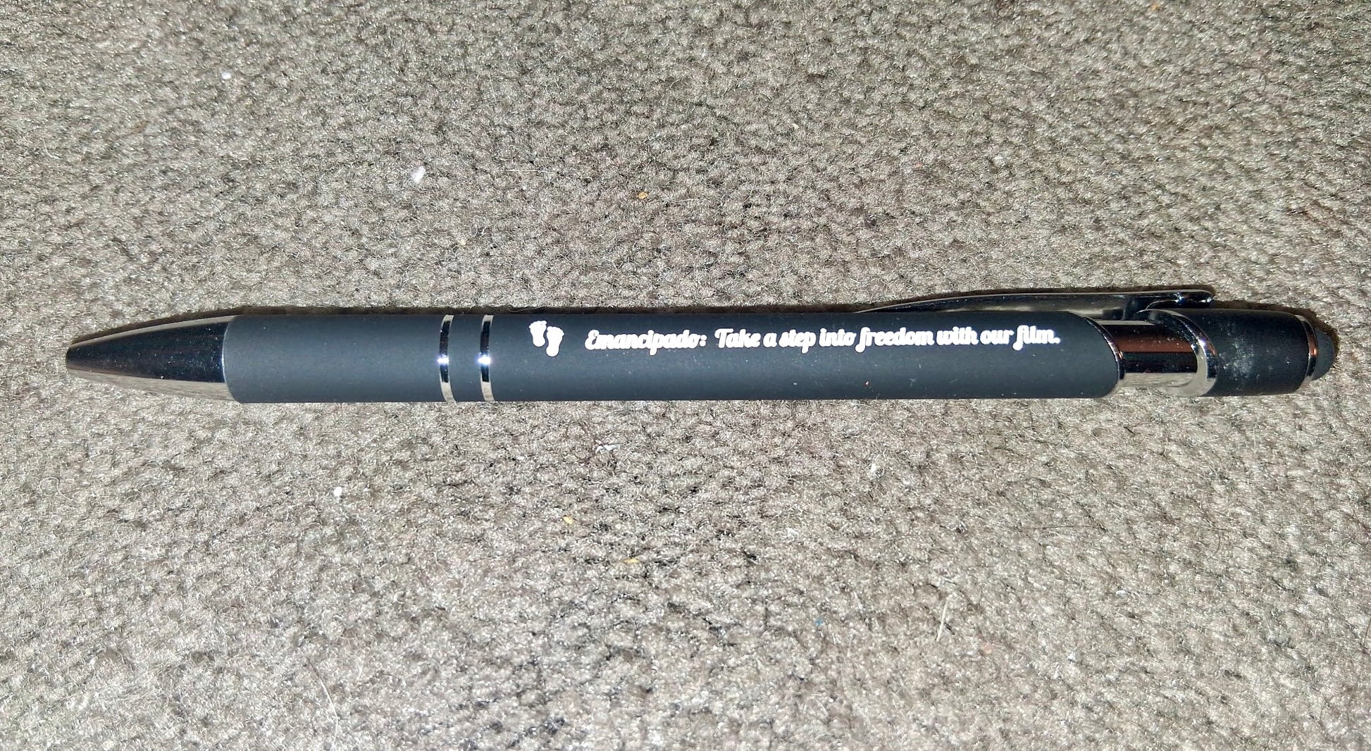 This keepsake pen created by Image Quilt Productions has an inscription that reads, "Emancipado: take a step into freedom with our film."